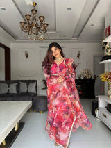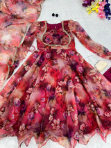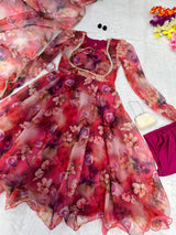 Fabric Digital Printed Pure Organza Silk Anarkali Suit Of Huge Flair With Lace Border Type Fully Stitched Size XS-34,S-36,M-38,L-40, XL-42 Pant Fabric ButterCotton Pant Fully Stitched Dupatta Fabric Organza Digital Printed Dupatta With Lace Border Size 2 Meter Occasion Function & Party Wear Care Instructions Dry Clean Only