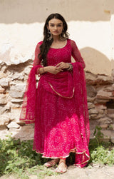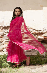 Digital Print Pink Colour organza silk Anarkali Suit Set with huge flair