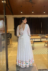 Captivating White Color Georgette Sequence And Embroidery Work Gown
