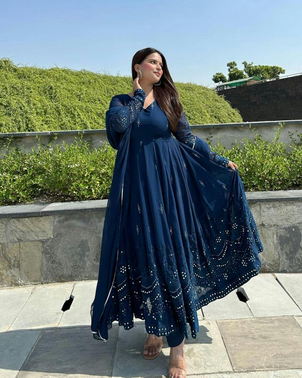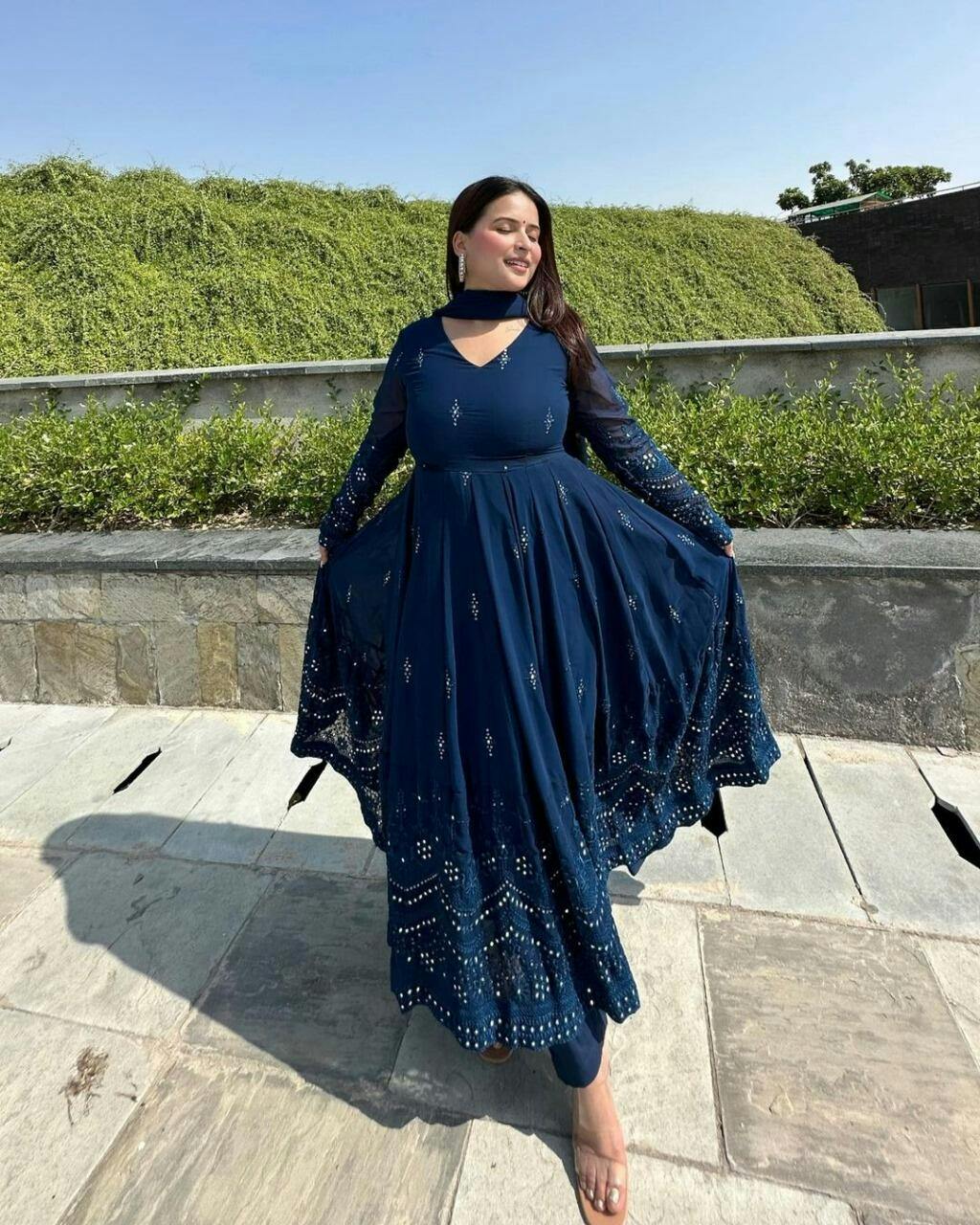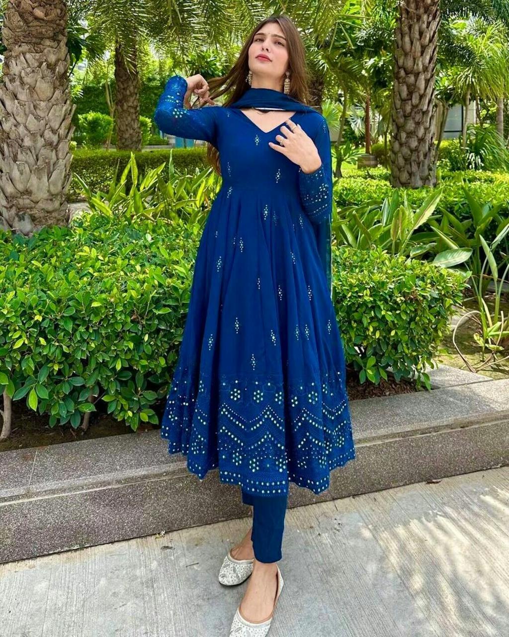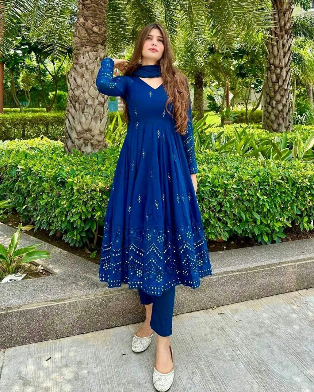 Glimmering Blue Color Sequence Thread Work Anarkali Gown