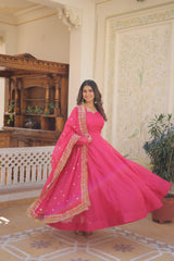 Kali Pattern Pink Color Gown With Embroidered Work Dupatta