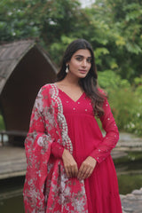 Pink Color Alia Cut Kurti Set With Rich Print Dupatta