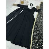 Presenting Black Georgette Gown Dupatta Full Set With Pent Ready To Wear