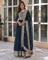 Dupatta : 2.25 Meter Faux Blooming With Sequence Embroidered With Designer Lace Border