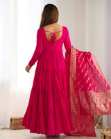 Rani Pink Color Pure Roman Silk Ruffle Style Anarkali Suit