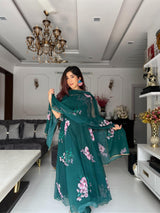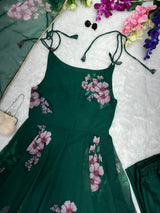 Terrific Green Color Organza Silk Anarkali Gown