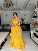 Glimmering Haldi wear Yellow Color Jimmy Organza Lehenga Choli