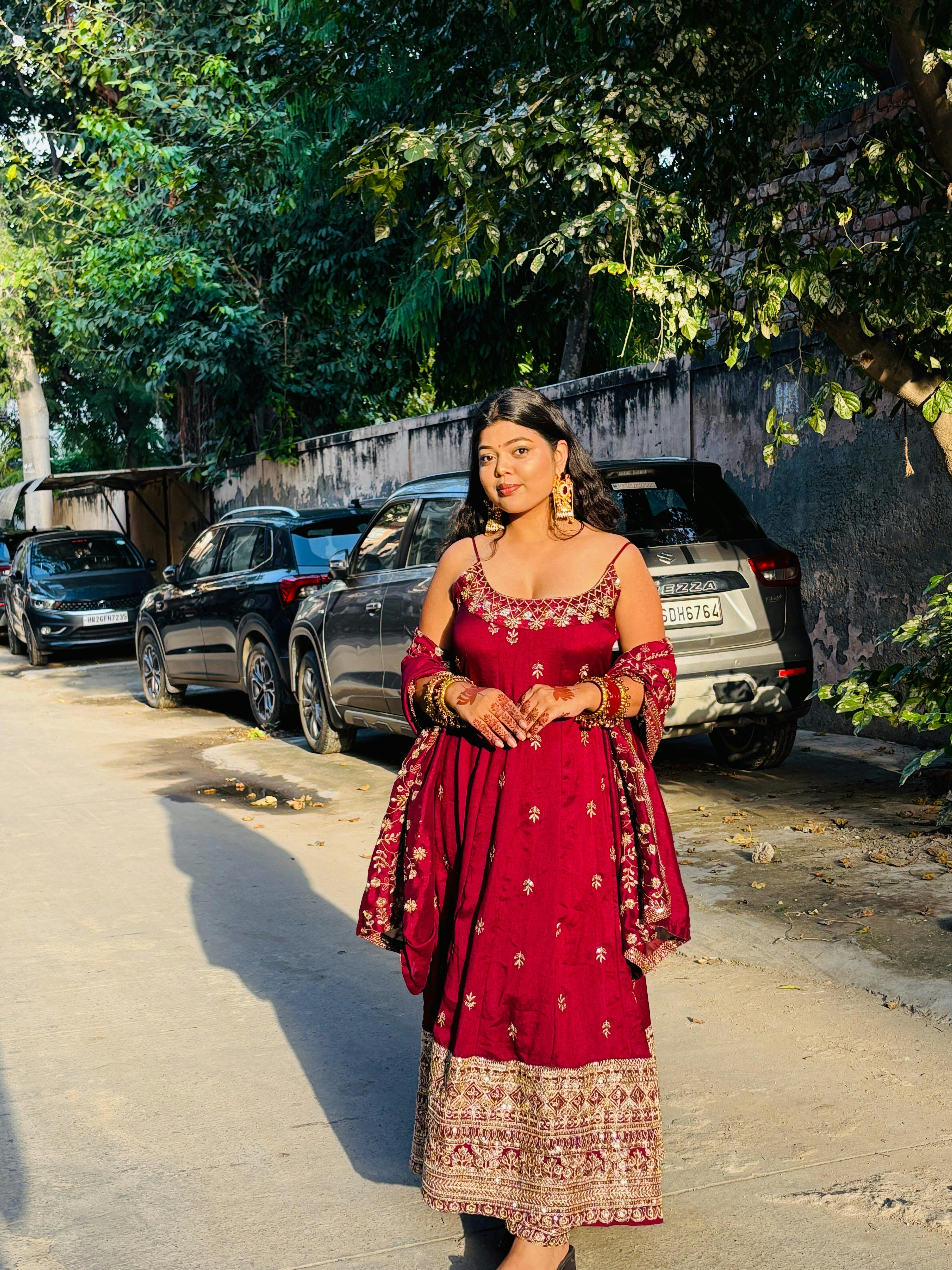 Alveera Premium Quality Maroon Anarkali Suit Set