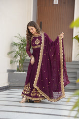 Heavy Designer Gown in Wine Georgette With Sequence Embroidery Work and Dupatta