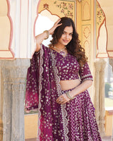 Design Wine Color Sequence Embroidered Jacquard Lehenga Choli