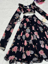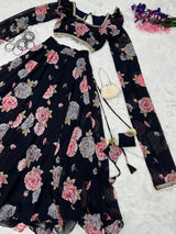 Fancy Sleeves Pattern Flower Print Black Lehenga Choli