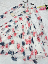 Fancy Sleeves Pattern Flower Print White Lehenga Choli