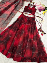 Lovely Digital Printed Maroon Color Organza Lehenga Choli