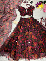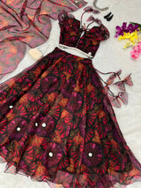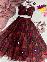 | Work | Digital Printed Lehnga With Knitted Flowers |