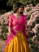 Mustard Color Zari Weaving Work Kanchipuram South Indian Lehenga Choli