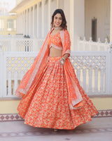Orange Color Pure Viscose Jacquard Lehenga Choli