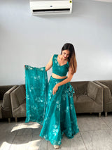 Wonderful Aqua Green Organza Silk Lehenga Choli