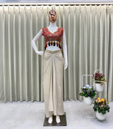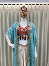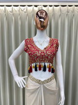 Designer Fancy Western Style Cording Sequence Work Blouse With Cowl Skirt and Shrug