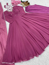 Dusty Pink Indian Designer Gown With Embroidery Work on Neck and Dupatta