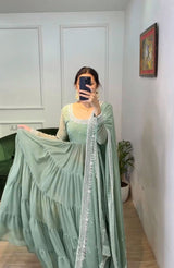 | Fabric | Heavy Georgette Embroidery Sequence Work With Rivet Moti Work |