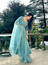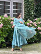 Festive Wear Sky Blue Embroidered Anarkali Suit with Dupatta