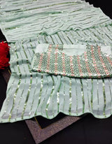 Bollyclues Embellished Sequinned Pure Georgette Celebrity Saree