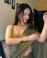 Elegant shimmer Tissue Teal Blue saree Lightweight & Stylish Drape