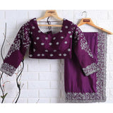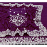 Purple rangoli georgette silk fancy thread work ceremonial saree