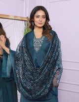 Blue Color Hand Work Art Silk Palazzo Style Salwar Suit