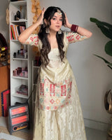 Khushi Silk Heavy Work Off White Sharara Set