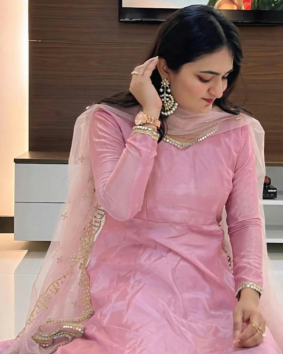 Delightful Light Pink Anarkali Gown With Net Dupatta