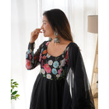 Launching this timeless and classic black floral printed organza anarkali suit set for the upcoming festivities and wedding season *