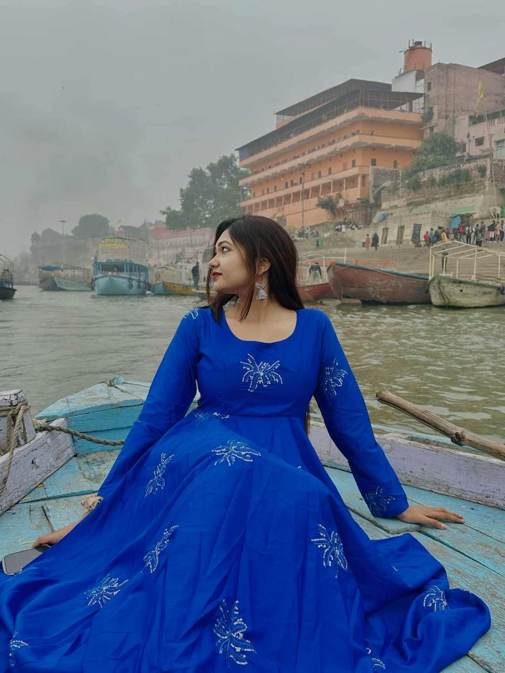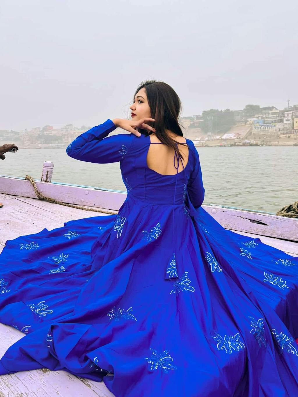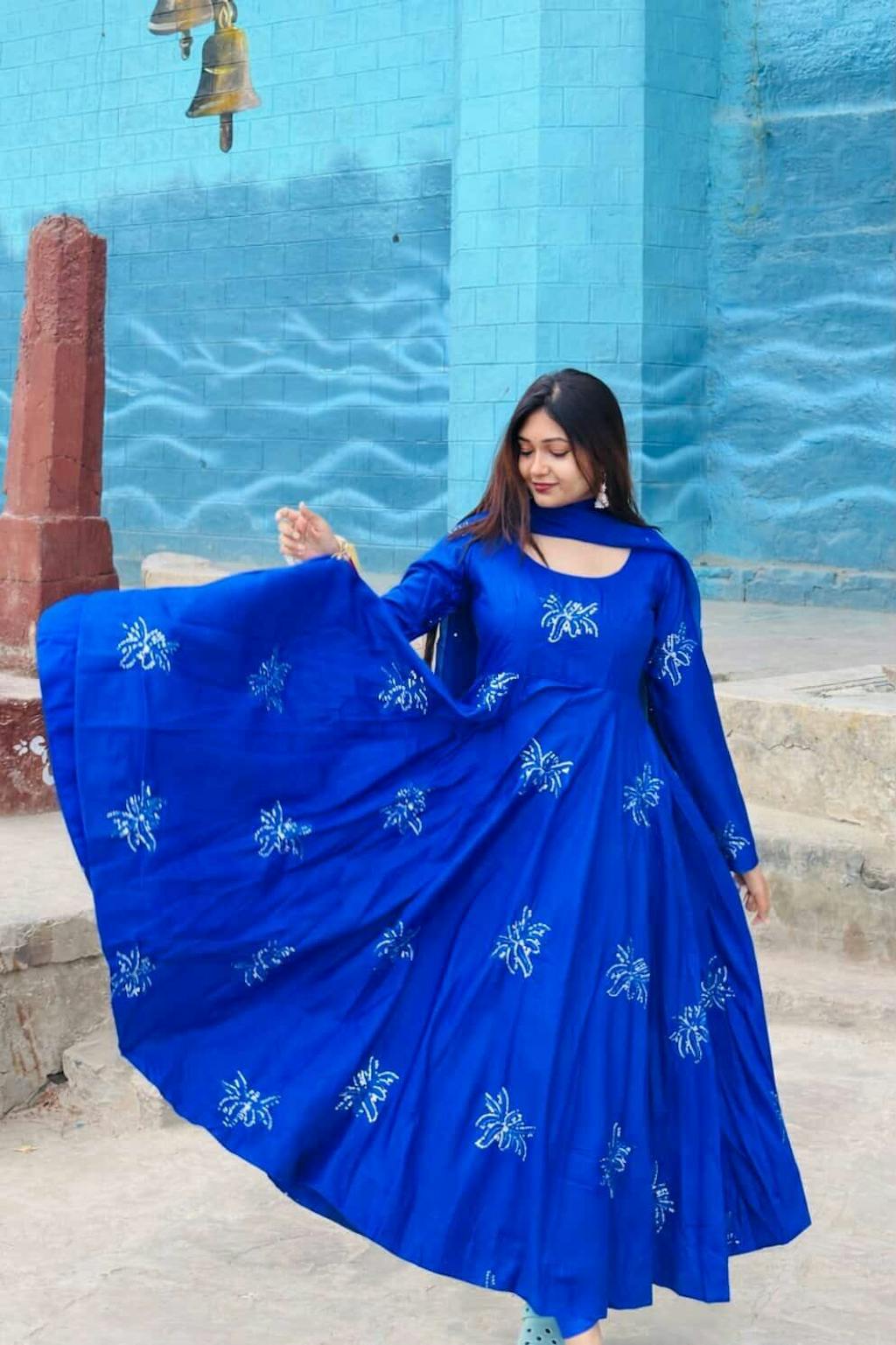 Blue Color Faux Georgette Thred & Sequnce Embroidered Work Anarkali Suit Set
