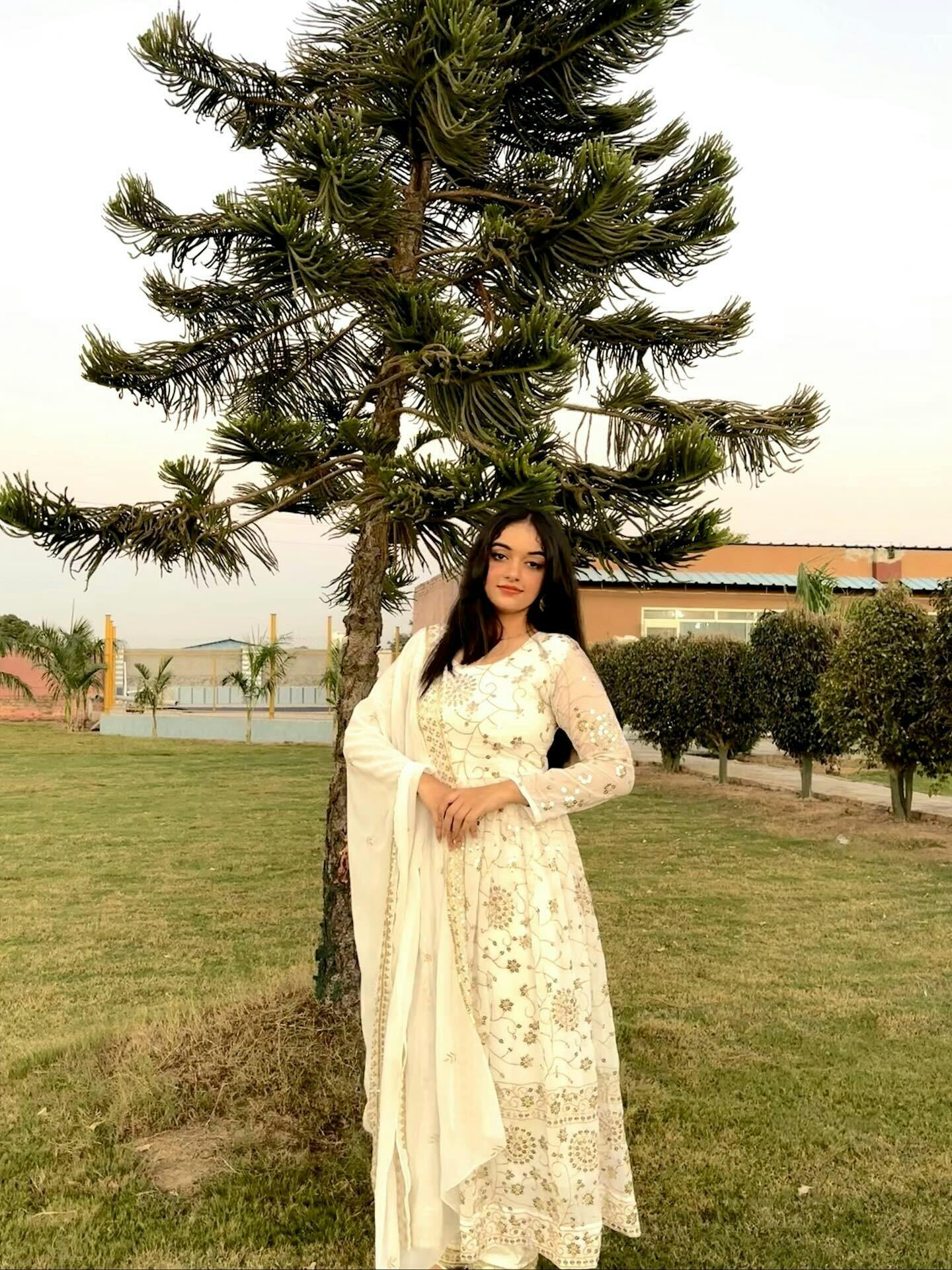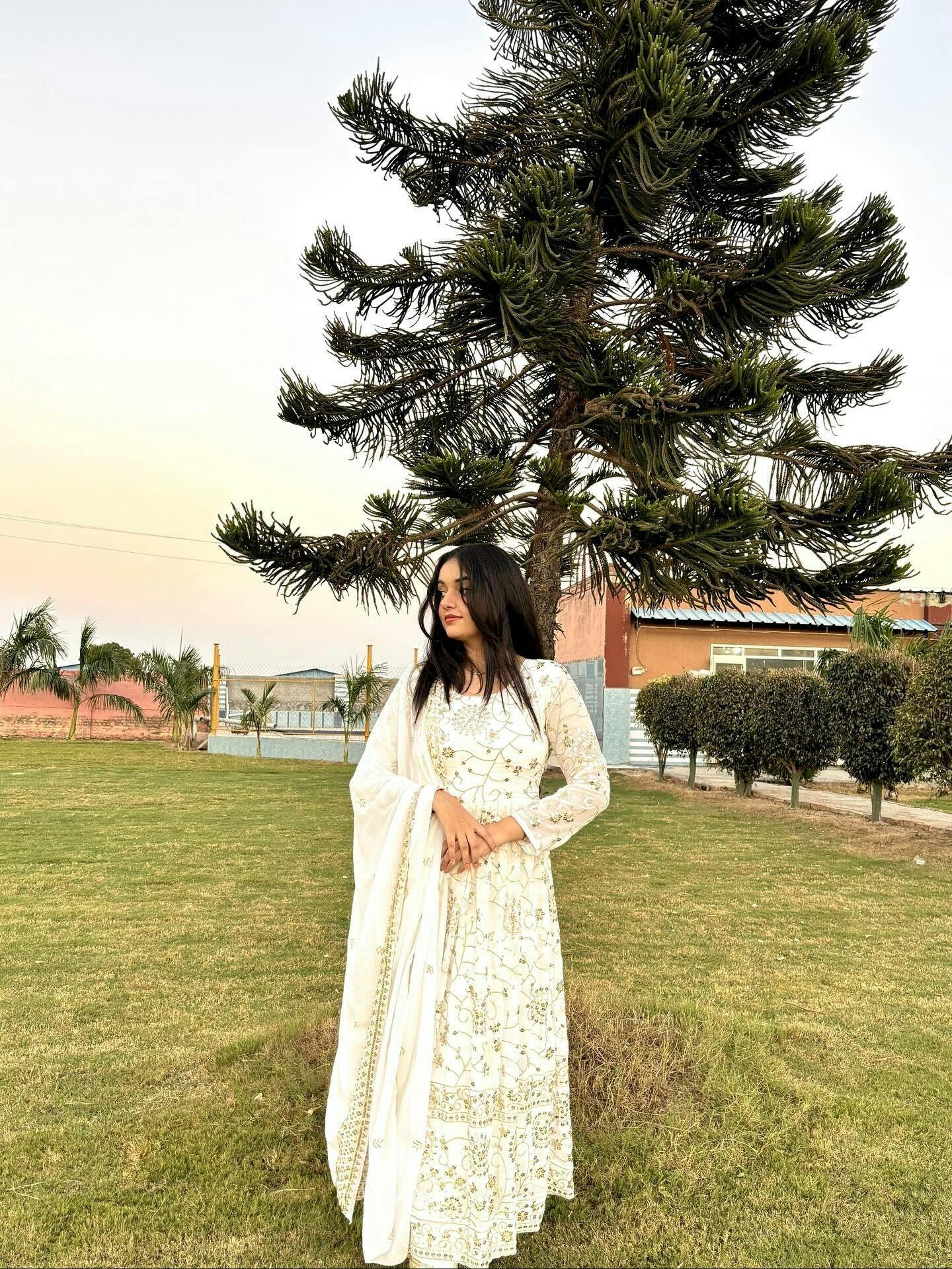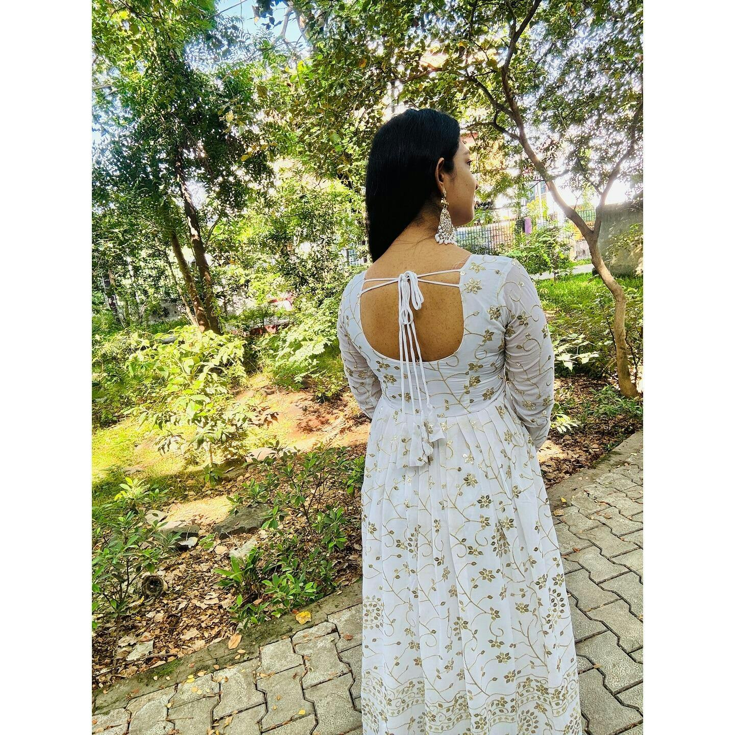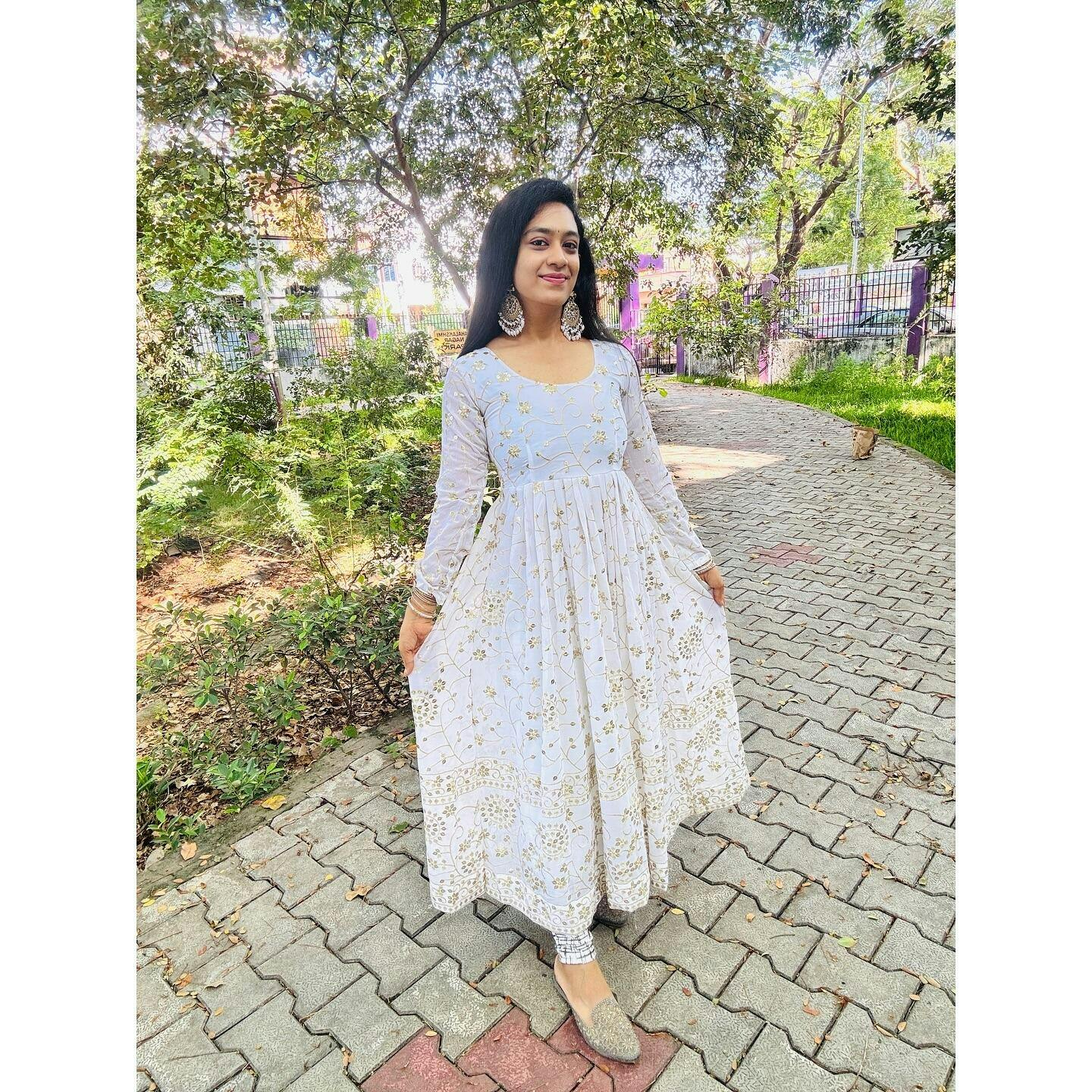 Full Heavy Work White Color Georgette Anarkali Gown