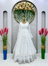 Fabric Faux Georgette With Inner Work Lace Work With Tassels. Size M (38), L (40), XL (42) Flair 3.5 Meter Gown Length 54-55 Inches Gown Flair 3.5 Meter Bottom Fabric No Dupatta Fabric Faux Georgette Size 2 . 2 Meter Occasion Festival & Party Wear Care Instructions Dry Clean Only