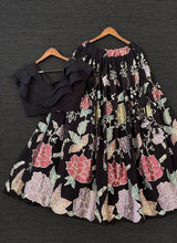 Stylish Black Sequins Georgette Party Wear Crop Top Lehenga